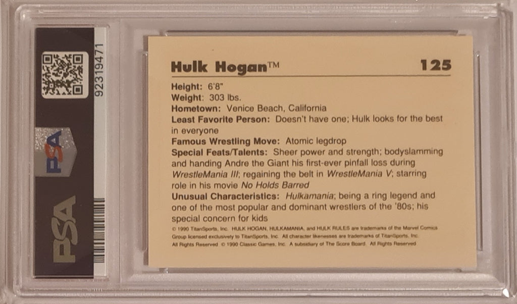 1990 Classic WWF Hulk Hogan #125 PSA Mint 9 Trading Card