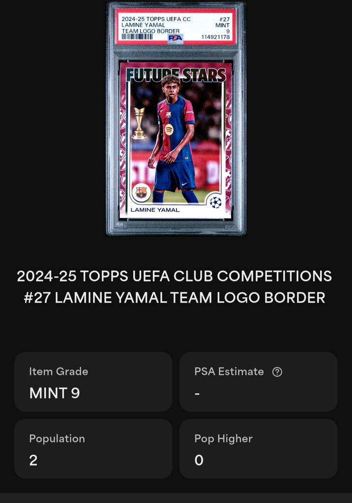 Extremely rare 2024-25 Topps UEFA Club Competitions Flagship Edition PSA Mint 9 graded Lamine Yamal ✨️'Team Logo Border'✨️ insert card 🔥💎📈
