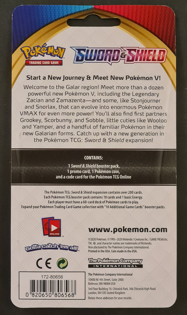 2020 Pokemon Sword and Shield base set Checklane Blister booster pack.