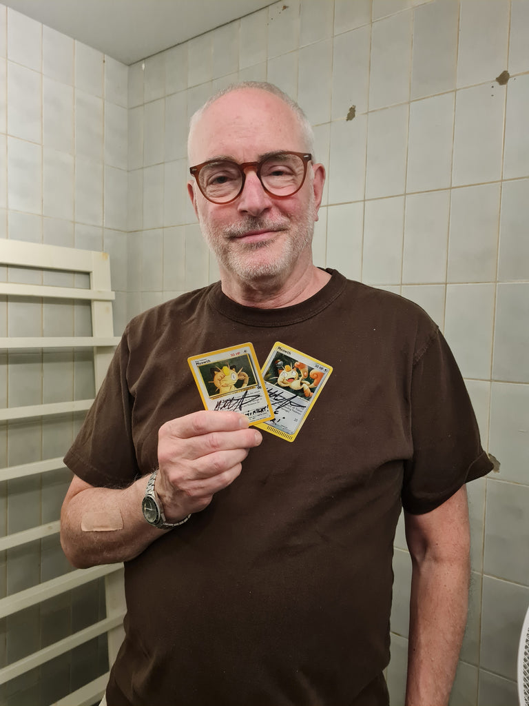 Signed by Matthew Sussman a.k.a. Nathan Price (OG Meowth voice actor) on 28-08-2025 during an exclusive Whatnot live signing in the Netherlands.